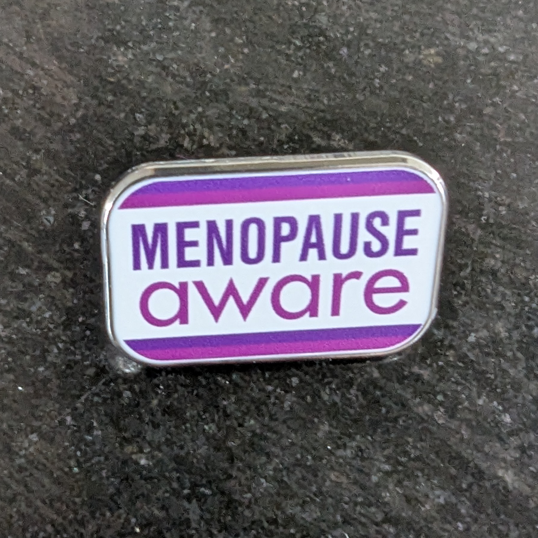 The Menopause Cafe enamel Menopause Aware badge is a stylish accessory to show your support for those experiencing menopause and your willingness to talk about menopause.